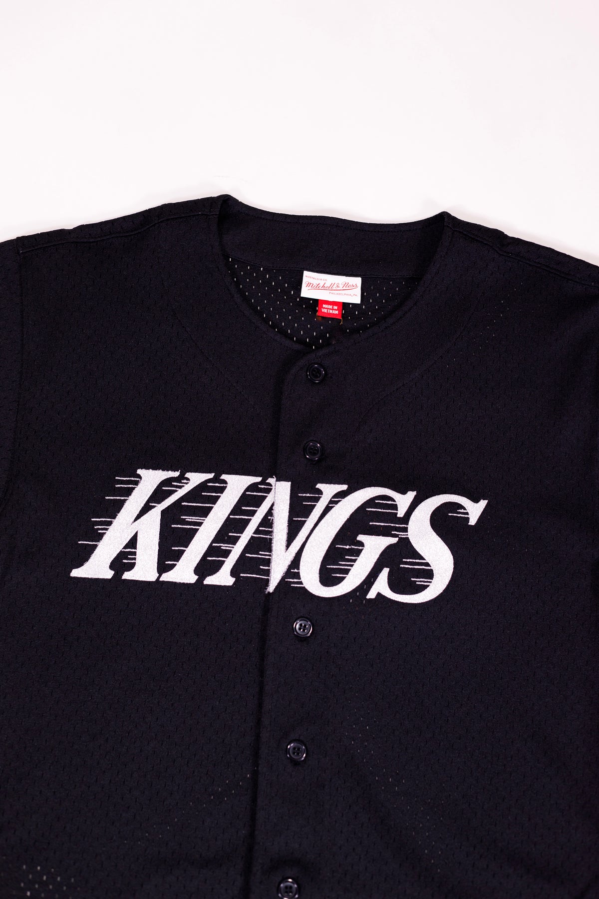 Stay cool and stylish with the LA Kings Mesh Button-Up Vintage Wordmark Jersey. Featuring breathable mesh fabric and a timeless vintage design, this jersey combines comfort and classic team pride. Perfect for game days or everyday wear, it lets you support the Kings while enjoying lightweight, breathable comfort. Elevate your fan gear with this iconic piece.